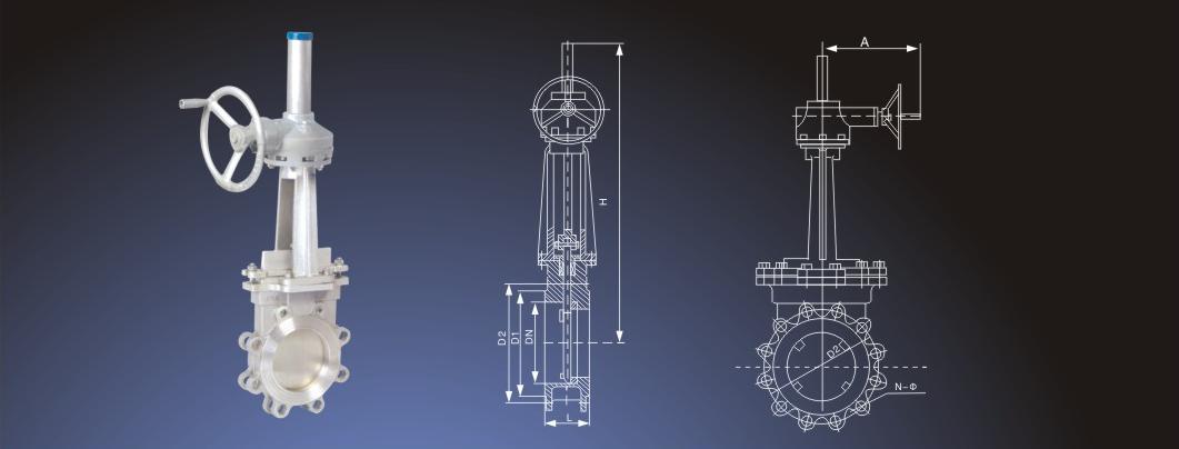 傘齒輪對夾式刀型閘閥
